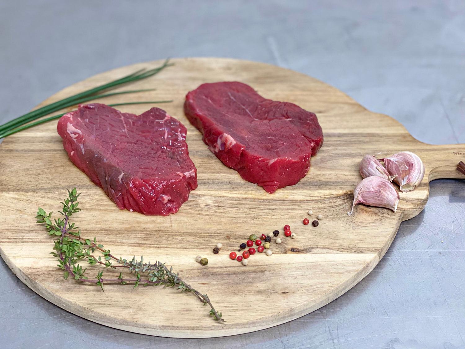 De l'anglais rump (croupe) et steak (tranche de grillade), le rumsteck est une partie de l'aloyau, c'est-à-dire l'arrière de l'animal, côté cuisse, de la queue au prolongement du filet et du contre-filet. Morceau assez large qui forme le haut de la cuisse, c'est une viande à fibres courtes, goûteuse et tendre.